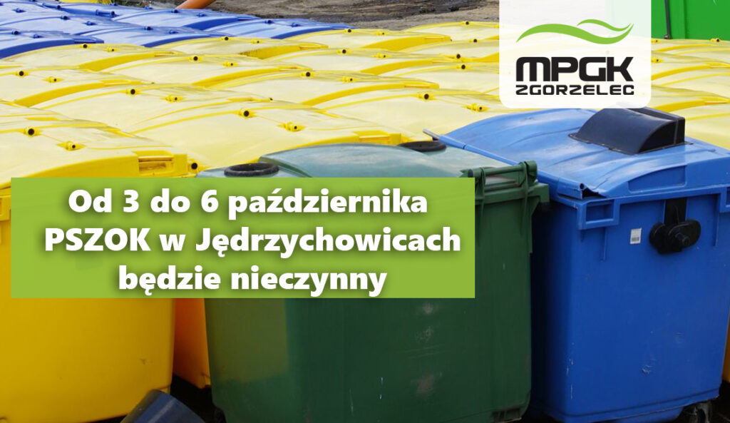 Informujemy, że dniach od 3 do 6 października PSZOK w Jędrzychowicach będzie nieczynny.